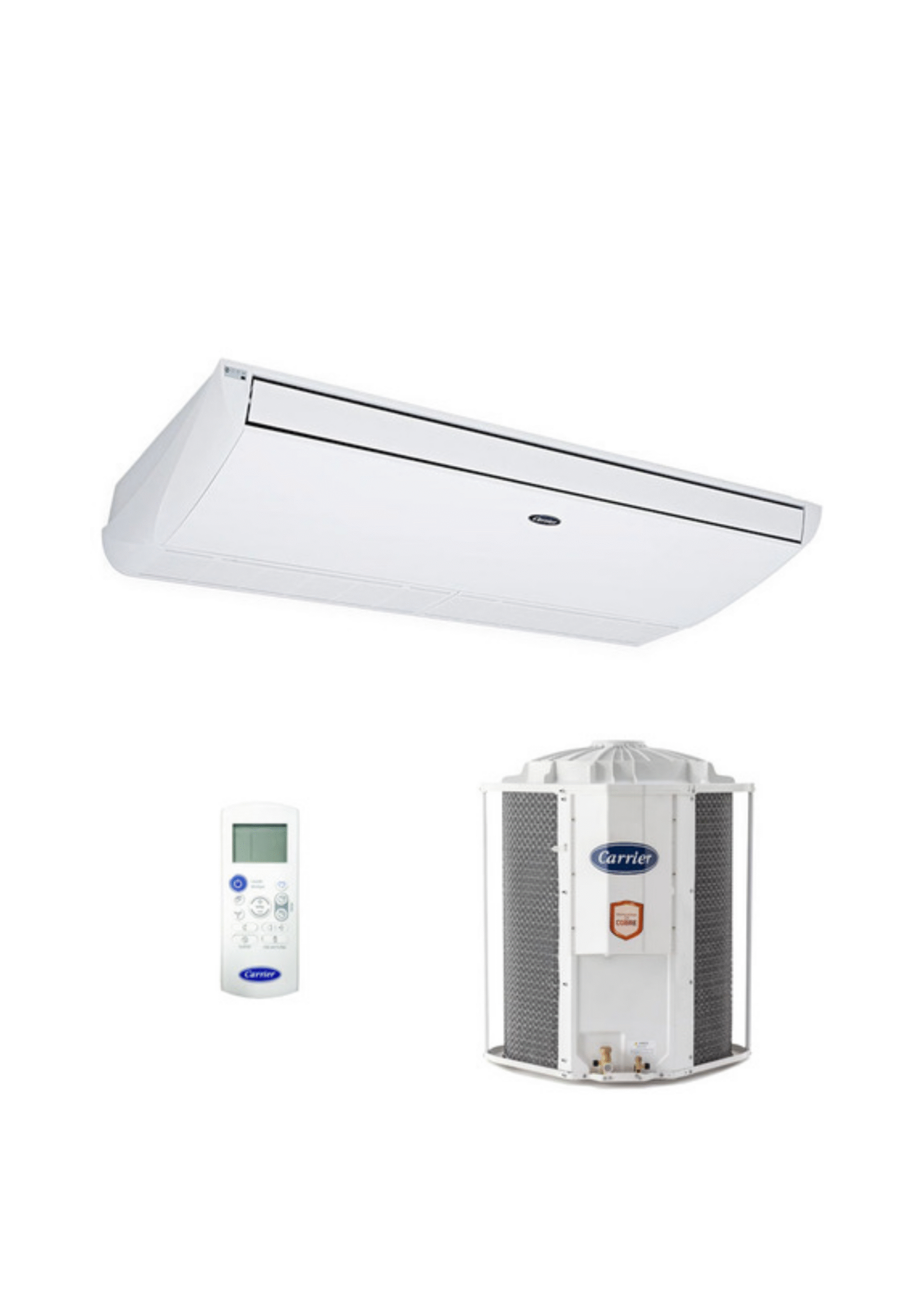 Alta performance e conforto para grandes ambientes. Com design versátil, pode ser instalado no piso ou no teto. Possui serpentina de cobre, modo turbo, timer, função swing e controle remoto. Utiliza gás R-410A, é classe B em eficiência energética e opera em 220V ou 380V.