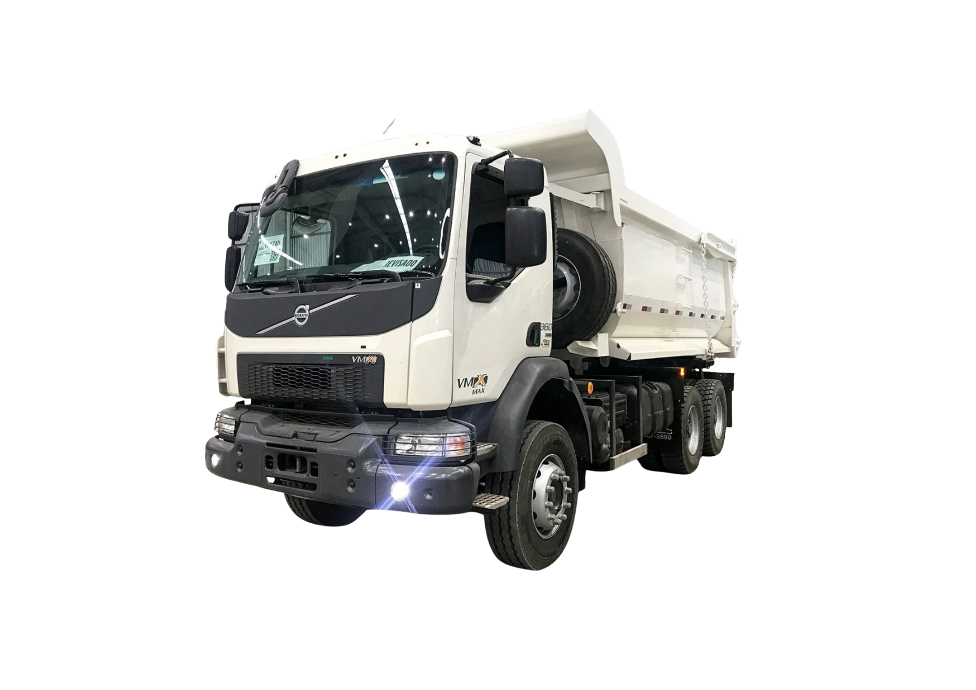 Tipo: Caminhão novo, zero km, trucado (6×2), cor branca.