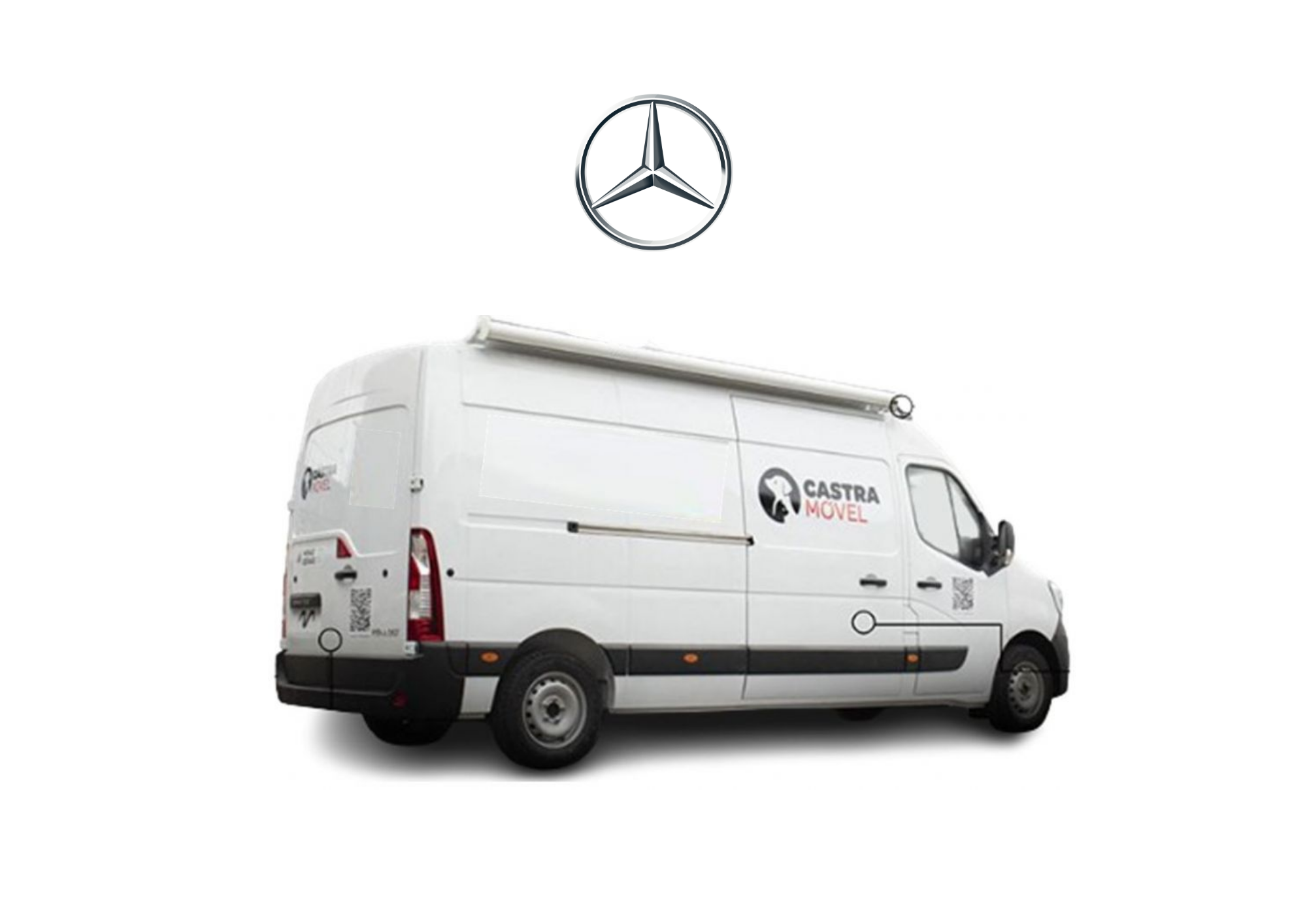 Identificação: “UNIDADE MÓVEL VETERINÁRIA – CASTRAMÓVEL” nas laterais e traseira.