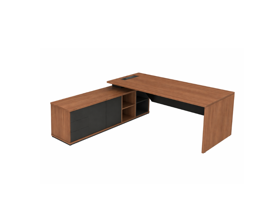 MESA RETANGULAR PARA PRESIDÊNCIA 2000x900x740mm COM ARMÁRIO LATERAL CREDENZA LD/LE 1800x500x610mm